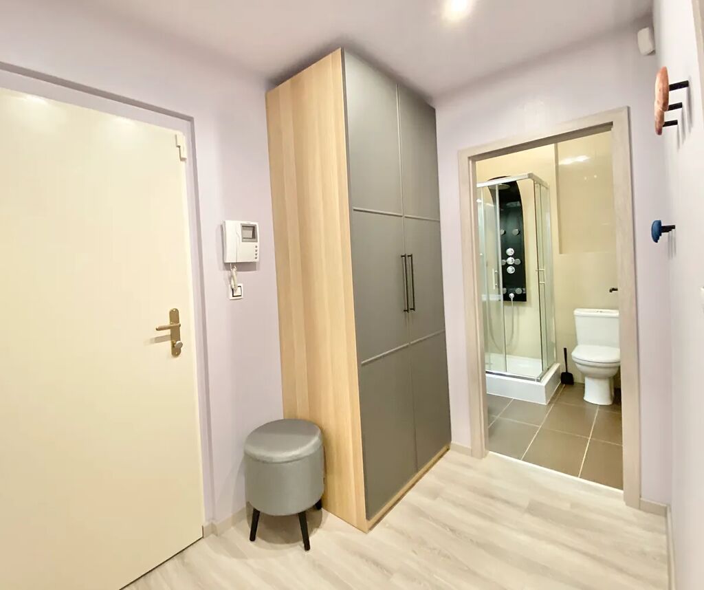Účelnou dispozici bytu ve 3. podlaží tvoří obývací pokoj s jídelnou, kuchyňský kout, 2 ložnice, 2 koupelny, předsíň. Z obývacího pokoje vede vstup na prostorný balkón.