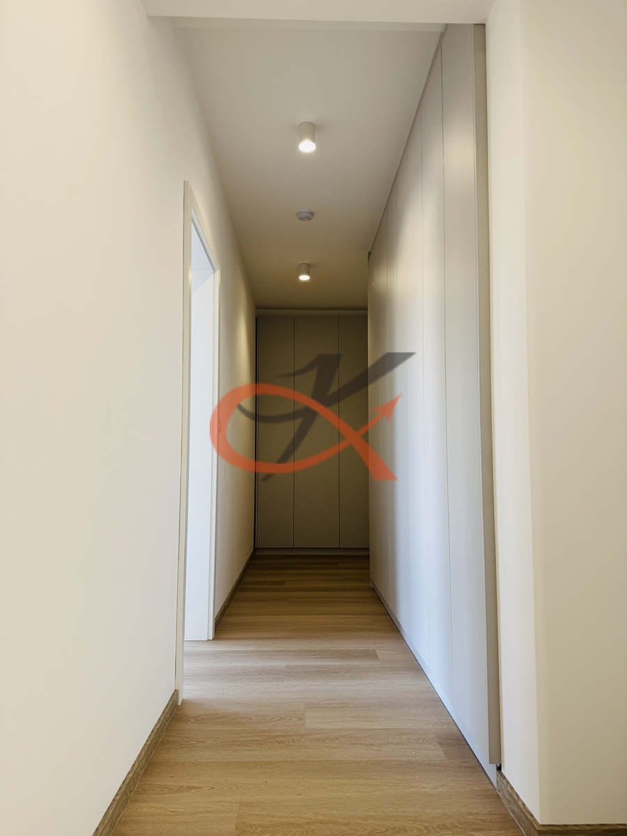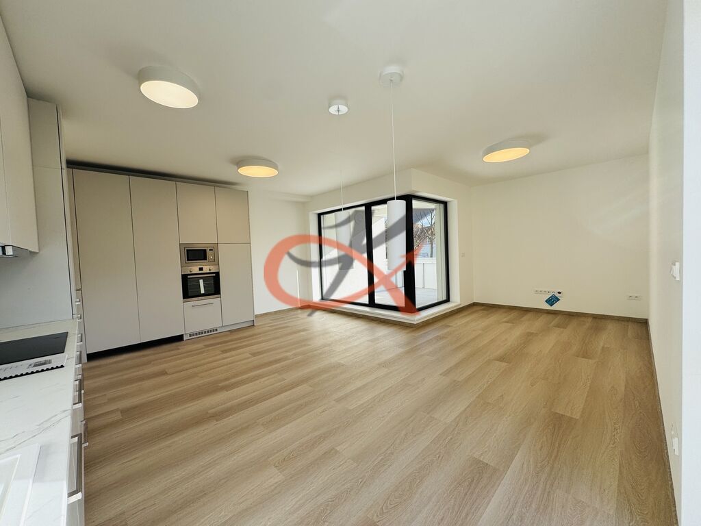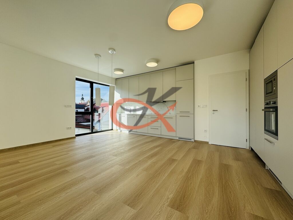 Jednotka 3+kk o podlahové ploše 86,20m² je situovaná na II. NP s JZ orientací. Sestává z obývacího pokoje s kuchyňským koutem, který otevřeně dělí jídelna. V kuchyni je zabudovaná lednice s mrazákem, dále myčka, trouba, mikrovlnná trouba a indukční deska na vaření. Z této místnosti je vstup na balkón (+ 9m²), který je částečně krytý a dostatečně prostorný pro odpočinek na slunci či domácí grilování. Další místnost je ložnice se skříněmi, pokoj, chodba s úložnými prostory, ve kterých je vybudovaná příprava na pračku a umístěn bojler. Pak už jen koupelna s WC. Vytápění podlahové, elektrické. K dispozici připojení na optiku, jedno parkovací místo a komora na patře o výměře 4,50 m² k uskladnění sportovních potřeb. Ihned k nastěhování pro první obyvatelé. Vratná kauce ve výši trojnásobku měsíčního nájemného.