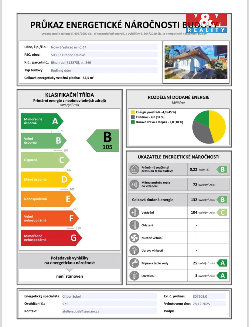 Nabízíme k prodeji bungalov o dispozici 3+kk v Hradci Králové, v lokalitě Nový Březhrad. Dům je v energetické třídě B a jedná se tak o velmi úsporné bydlení. Stojí na pozemku o rozloze 448 m², na kterém je ještě malý domek, vytápěný tepelným čerpadlem nebo krbovými kamny, vybavený kuchyňkou. K domu náleží další samostatný oplocený pozemek o rozloze 321 m² a podíl 1/5 na příjezdové cestě o rozloze 550 m². Parkování je možné přímo na pozemku u domu pod přístřeškem pro dva automobily i před branou. Dům má číslo evidenční a nachází se poblíž přírodního koupaliště „Borovinka“ a nákupní zóny. Více informací u makléře.