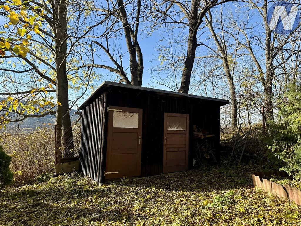 Na pozemku je také menší altán s betonovým krbem, ideální pro letní posezení, a samostatný skládek na nářadí, kde se nachází i samostatná splachovací toaleta. Přístup k chatě je možný autem, ale pohodlně sem dojdete i pěšky z města.