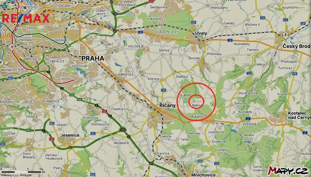 Dopravní dostupnost: Praha 21 km metro A i C, vlak Český Brod i Říčany, PID: Autobusová zastávka cca 300 m se spojem na vlakové nádraží na Prahu