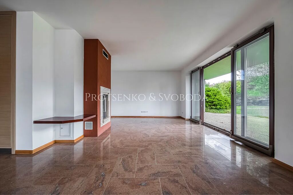 Velkoryse prosklený obývací pokoj s krbovými kamny s vložkou napojen na bojler (teplovzdušné vytápění). Přímý vstup na krytou terasu (42 m²) vytváří příjemné propojení se zahradou. Součástí je také luxusní kuchyně z masivu značky Sýkora s pracovní deskou z umělého kamene v hodnotě 150 000 Kč, propojená s jídelnou (celkem 68 m²). Dále pokoj pro hosty či pracovnu, severně orientovaná spíž a koupelna se sprchovým koutem, WC a prostorem na pračku. Vstupní hala disponuje velkou vestavěnou skříní a má přímý výstup na zahradu. Celé přízemí je vybaveno podlahovým vytápěním a jednotnou keramickou dlažbou.