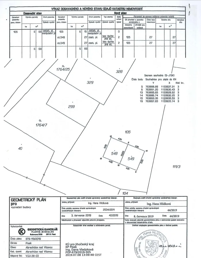 Předmětné nemovitosti jsou zapsány v katastru nemovitostí u Katastrálního úřadu pro Jihočeský kraj, Katastrálního pracoviště Písek na LV č. 27, pro katastrální území Albrechtice nad Vltavou a obec Albrechtice nad Vltavou.