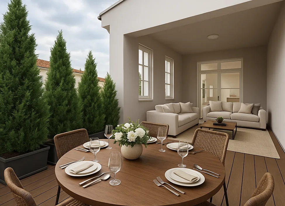 Penthouse se nachází v bezpečné vzdálenosti od řeky Vltavy a z terasy či balkónů není slyšet žádný hluk od dopravy. Prestižní adresa umožňuje majitelům penthousu žít v centru města a přitom mimo veškerý turistický ruch. V nejbližším okolí se najdou vyhlášené restaurace a také stylová kavárna Savoy. V těsné blízkostí domu nevedou žádné turistické trasy.