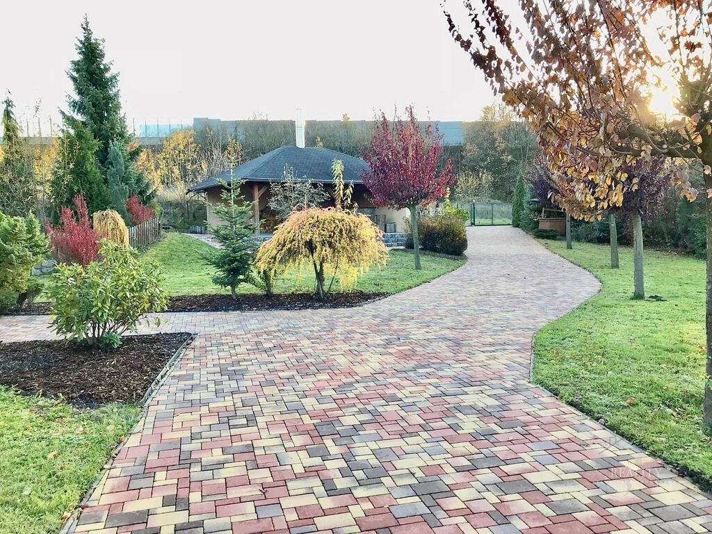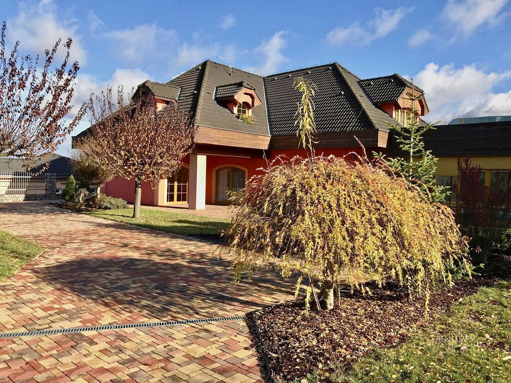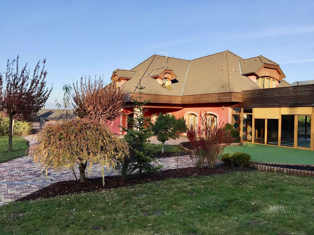 Wellness plocha není započtena do uvedené užitné plochy domu – uváděna zvlášť, přímý vstup z domu do wellness zóny a na nádherně členitou zahradu o 1 738 m² s okrasnými dřevinami, trávníky a odpočinkovými zákoutími, altán s velkým zděným grilem a posezením – ideální pro rodinné a společenské akce, elektrická brána, krytá garáž u vjezdu, dlážděné přístupové cesty po celém pozemku, francouzská okna a obloukové architektonické prvky zajišťující propojení s přírodou, vlastní studna (vhodná pro provoz a závlahu zahrady), technická místnost s technologií k bazénu, plynovým kotlem i kotlem na tuhá paliva