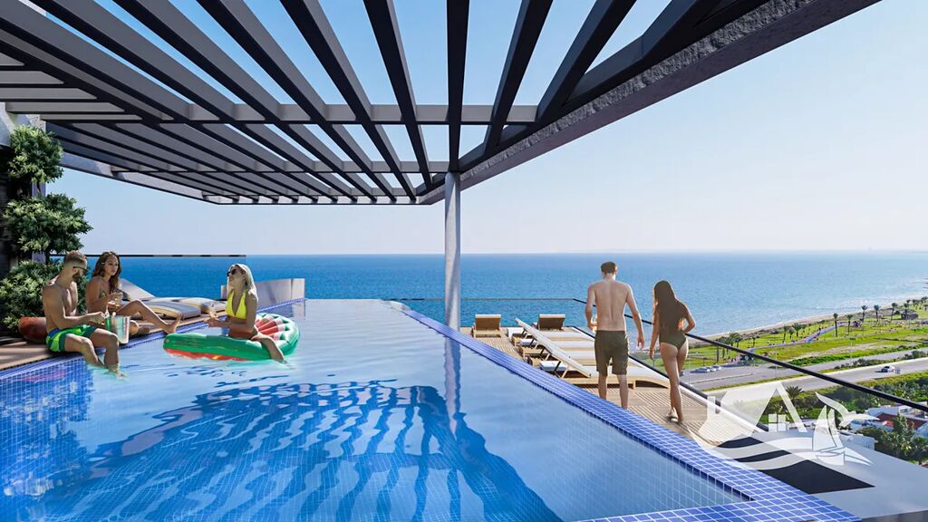Moderní 4 + 1 duplex s jacuzzi , balkonem a krásným výhledem na moře a bazén. Nachází se jen pár kroků od pláže, nabízí soukromou pláž, venkovní bazén, fitness, sky bar a barbecue zónu.