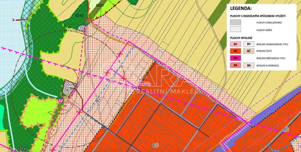 Dle platného územního plánu, který Vám na vyžádání ráda zašlu, je pozemek vedený jako bydlení čisté, a je zde možné postavit rodinný dům o maximální míře zastavěnosti 25% s maximální výškou objektů dvě nadzemní podlaží. Dle územní studie se jedná o rozvojovou zónu Benátky II. - též zašlu na vyžádání. Elektřina je dostupná v komunikaci přímo u pozemku, kanalizace, voda a plyn vzdáleny 124 m od hranice pozemku. Jedná se o rovinatý pozemek ve velmi žádané lokalitě na okraji obce sousedící se zástavbou rodinných domů. Délka pozemku je 58 m, šířka v rozmezí 14 - 18 m.