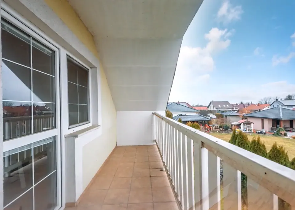 Ložnice rodičů navíc nabízí přímý vstup na útulnou lodžii, kde si můžete v klidu vychutnat sklenku vína po dlouhém dni, nebo během zimních měsíců využít prostor k sušení prádla.