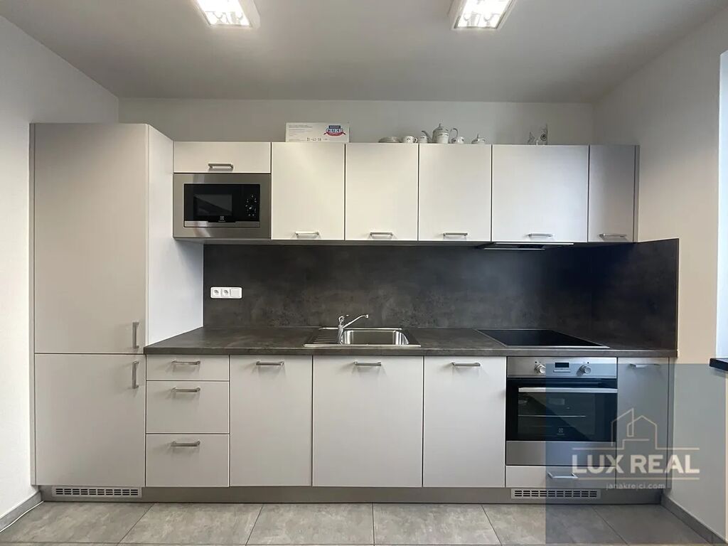 Kuchyně s jídelním koutem je komplet vybavena lednicí, indukční deskou, mikrovlnnou troubou. Každá kancelář je vybavena klimatizací značky Acond a venkovními žaluziemi. Místnosti jsou poměrně veliké a jejich výměra činí cca 25,2m2, cca 15,36m2, cca 12,45m2, cca 20,11m2. Mezi dvěmi kancelářemi je samostatná místnost o výměře cca 5,89m2, která může sloužit jako úklidová místnost, archiv, ale i jako serverovna.