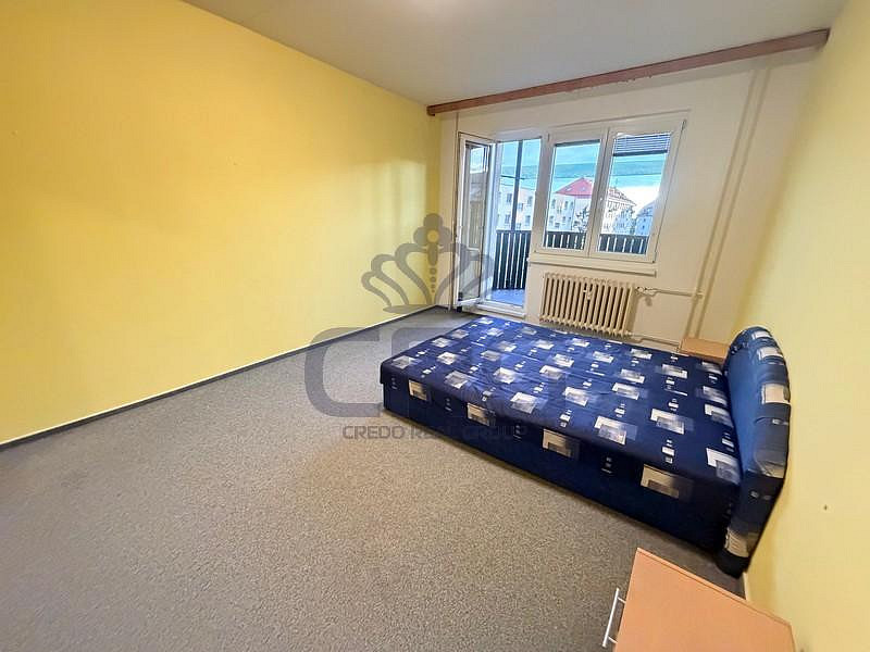 Výtahem vyjedeme do třetího patra a sejdeme do mezipatra, kde se nachází námi nabízený byt. Vejdeme do prostorné předsíně o výměře cca 5,1 m², ze které je vstup do ostatních samostatných místností v bytě. V kuchyni o celkové ploše cca 9 m² je kuchyňská linka se sporákem. Dominantou celého bytu je ložnice, respektive obytná místnost o výměře cca 18,1 m², ze které je vstup na balkón o celkové ploše cca 4 m² s nádherným výhledem do zeleně. V bytě je také samostatné WC o výměře cca 1 m² a koupelna o rozloze cca 2,1 m².