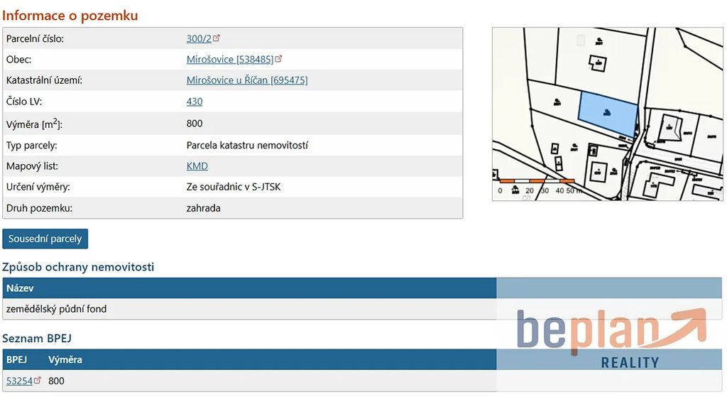 Chcete dostávat emailem podobné nabídky prodeje pozemků pro bydlení v Mirošovicích?