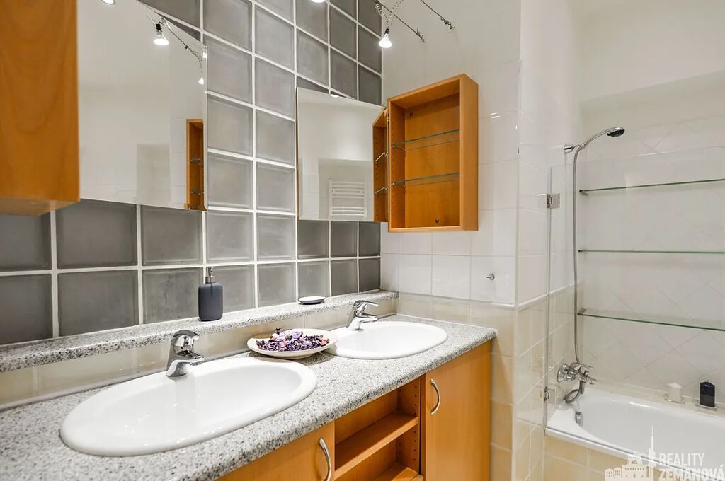 K pronájmu reprezentativní byt/mezonet o celkové výměře 118 m2, mezonet ve zvýšeném 1. NP a 2. NP. K bytu může náležet 1 garážové stání v domě. Dispozičně: 3+kk, tj. dvě ložnice, dvě koupelny, obývák s kuchyní, balkon.