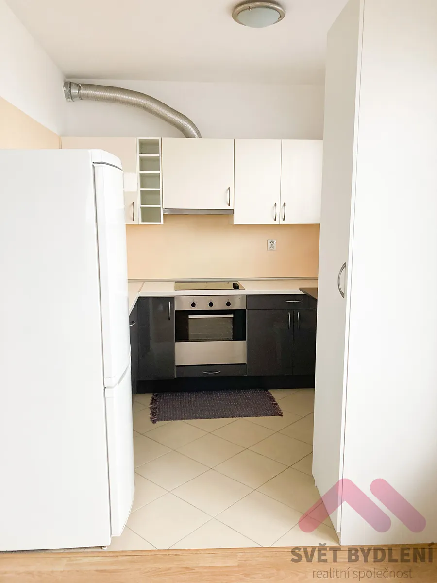 Ve výhradním zastoupení majitele nabízíme byt 1+kk, který se nachází v 8. patře cihlové novostavby. Byt je částečně zařízený: kompletní kuchyňská linka vč. myčky, lednice, sklokeramické varné desky s troubou, jedna menší skříň v předsíni, botník, v koupelně skříňka se zrcadlem, pračka a WC zvlášť. Postel která je na fotografiích není součástí vybavení ale je možné ji za dobrou cenu odkoupit od současného nájemce. K nastěhování volné od 1.12. K bytu náleží vlastní parkovací stání v podzemní garáži a sklep. Cena 17.900Kč + 2.800Kč záloha na služby (vytápění, voda, úklid domu, výtah, apod..) + elektroměr se převádí na nájemce (spotřeba cca. 900Kč)