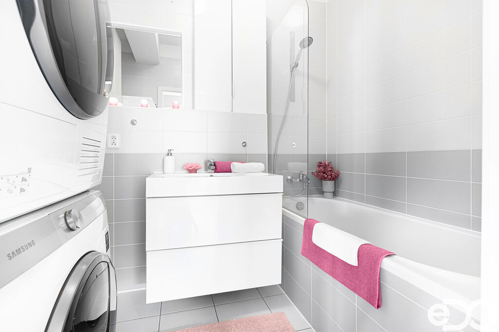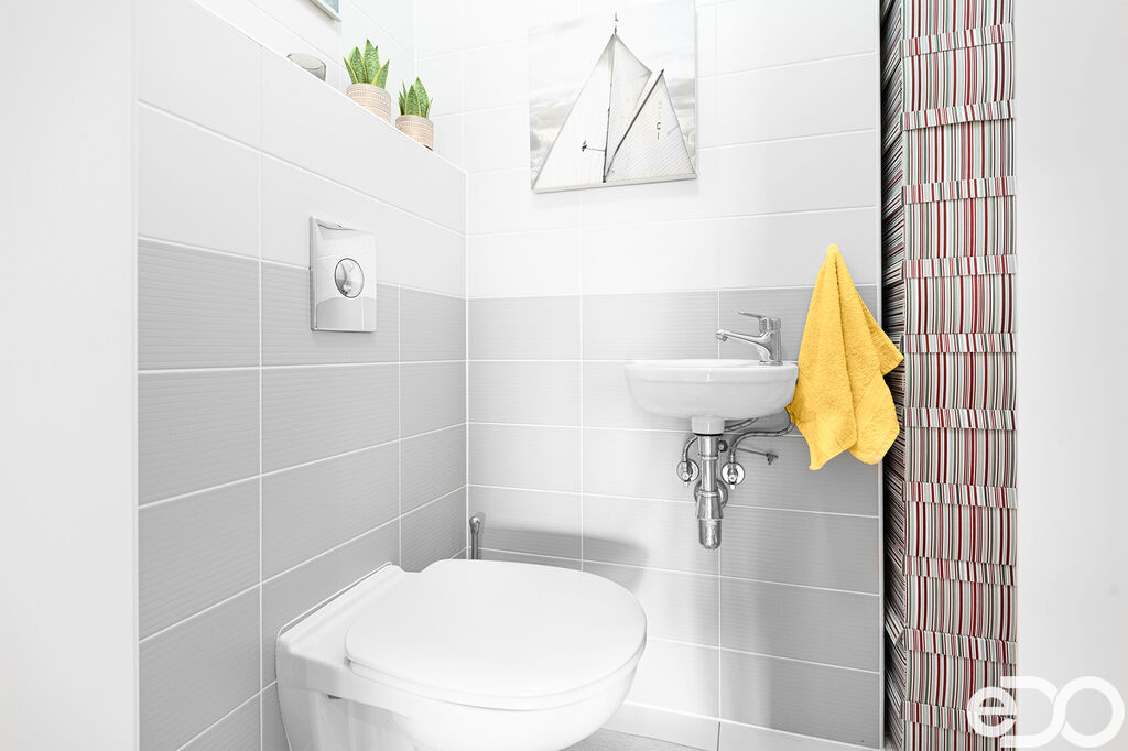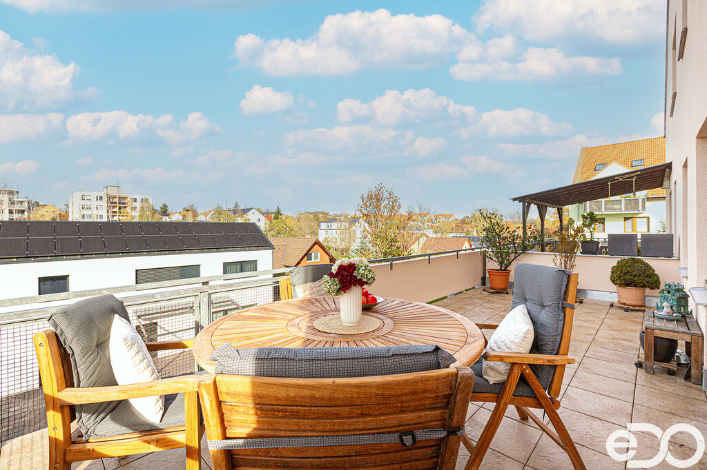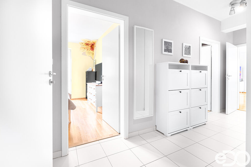 Dispozice bytu nabízí prostorný obývací pokoj s kuchyňským koutem a přímým vstupem na velkou terasu o ploše 23,7 m², dále dva samostatné pokoje, koupelnu s vanou, samostatné WC a předsíň s úložnými prostory.