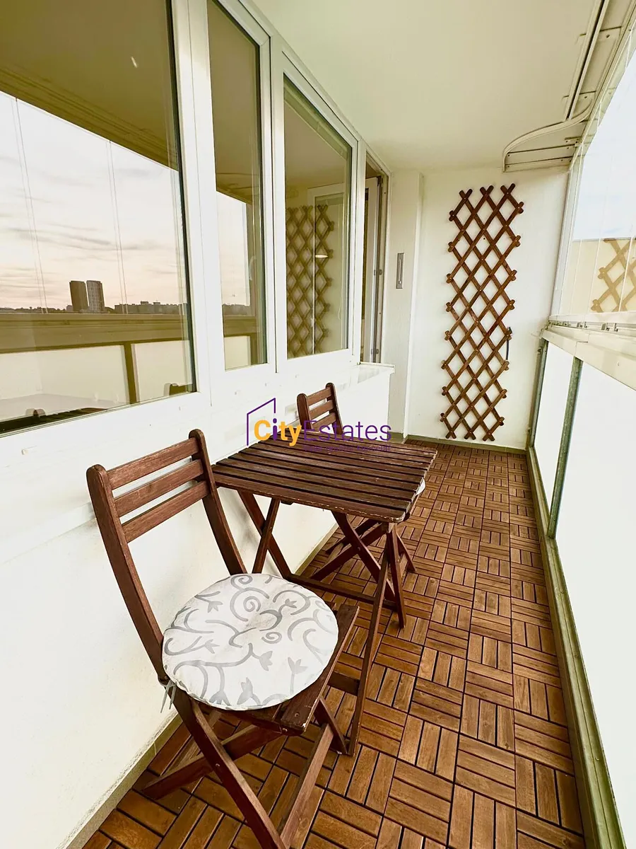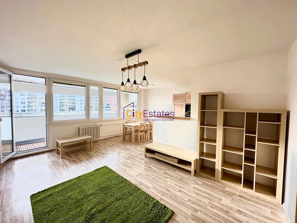 Světlý byt je orientovaný do dvou světových stran, přes velký obývací pokoj a kuchyň je široká zasklená lodžie a nerušeným výhledem. Dvě ložnice jsou situovány do ulice. V koupelně je vana, WC je samostatné. V bytě je nadstandartně velká komora s úložným prostorem.
