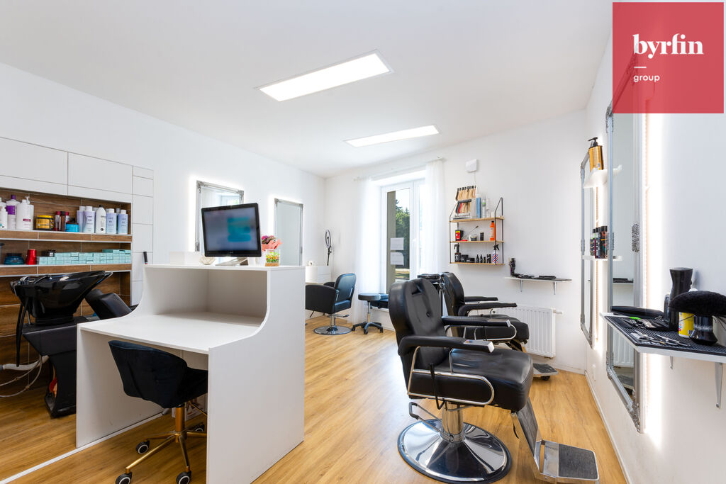 Prostor o výměře 29 m² je útulný a moderně zařízený. Součástí je vybavení, které zůstává novému majiteli, dále se zde nachází toaleta, umyvadlo a sprcha určená pro kadeřníky a barbery.