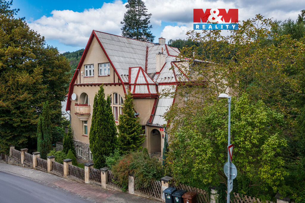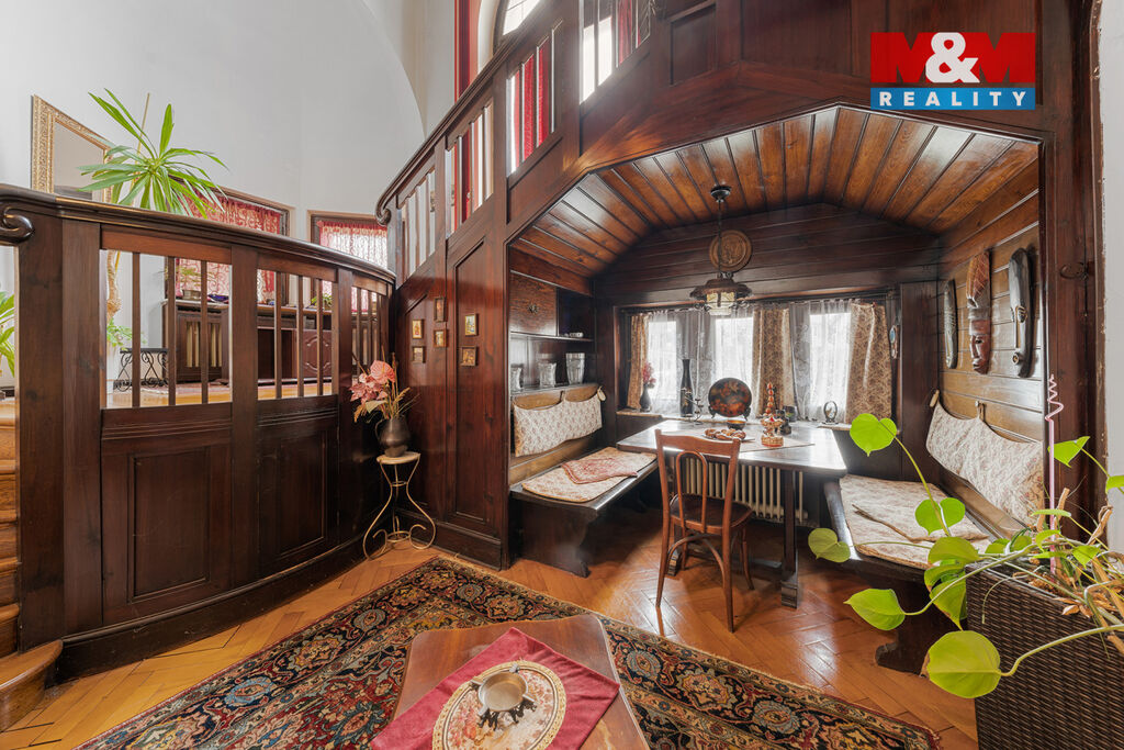 Nabízíme k prodeji mezonetový byt v prvorepublikové vile s bohatou historií sahající až do roku 1913, která si dodnes uchovává svůj původní charakter a jedinečnou atmosféru. Byt má samostatný vstup ze zahrady a je dispozičně řešen jako dvoupodlažní o užitné ploše 150 m². V přízemí se nachází předsíň a prostorná hala se schodištěm do horního podlaží, kde najdete galerii, kuchyň, světlý obývací pokoj s balkónem, ložnici s přímým vstupem na terasu a pokoj pro hosty s dalším balkónem. Kuchyň a koupelna prošly rekonstrukcí před devíti lety – kuchyň je vybavena vestavěnými spotřebiči a americkou lednicí s výrobníkem ledu, koupelna nabízí vanu i sprchový kout. K bytu náleží možnost užívání rozlehlé, udržované zahrady o výměře 1 402 m² se vzrostlými stromy. Byt se prodává plně vybaven. Pomůžeme Vám i s optimálním financováním zcela zdarma. Pro více informací kontaktujte makléře.