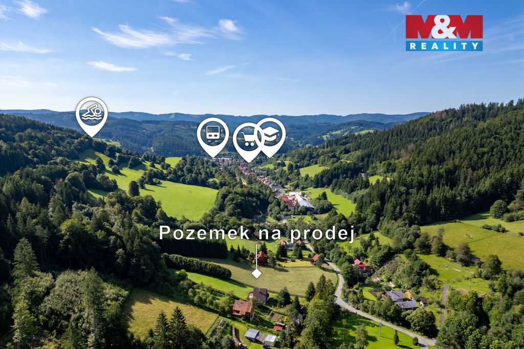 Nabízíme Vám ke koupi luxusní stavební pozemek v těsné blízkosti Velkých Karlovic - Nový Hrozenkov ve slepé ulici o výměře 7574 m² a 593 m² les. V ceně pozemku je kompletní stavební dokumentace rodinného domu, stav. dokum. vodovodní přípojky z vlastní vrtané studny, která je již zkolaudovaná v hloubce 95m, stav. dokum. splaškové a dešťové kanalizace včetně ČOV s odvodem do potoka. Na pozemku je již vyveden sloupek el. přípojky s měřením 32A. Je vydáno právoplatné stavební povolení 06/2025 na všechny stavby dle projektové dokumentace. Rodinný dům o celkové výměře 327 m² podlahové plochy je možné po výstavbě využít jako rodinné sídlo nebo zážitkové ubytování. V plánech rodinného domu se nachází šest ložnic, přičemž každá má svou koupelnu. Dominantu tvoří společenská místnost, která navazuje na relaxační místnost a saunu.