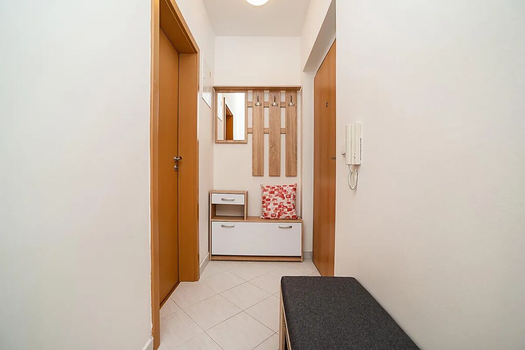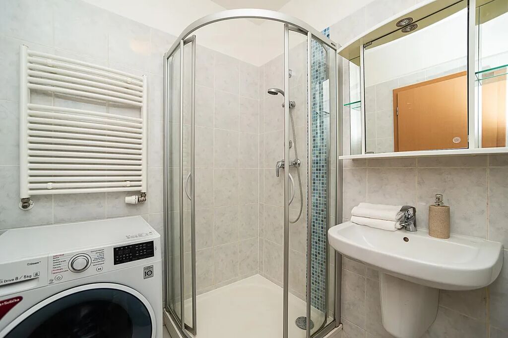 Prostorný obývací pokoj s kuchyňským koutem, samostatná ložnice, koupelna se sprchovým koutem a toaletou, předsíň a balkon. K bytu náleží také sklep a pohodlné parkovací stání v suterénu sousedního domu. Byt se pronajímá kompletně zařízený, takže se můžete okamžitě nastěhovat a začít bydlet bez starostí.