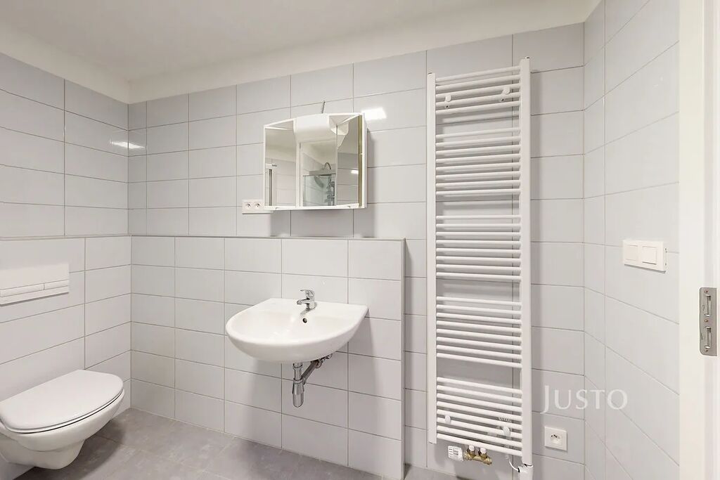 Interiér majitelé vybavili nábytkem na míru (vše, co vidíte na fotkách). Jedná se sice o byt s dispozicí 1+kk, ale v obýváku je vkusně vyřešený „spací kout“. Kuchyňská linka je kompletně zařízena – k dispozici je lednice, indukční varná deska, myčka, trouba, mrazák i barový jídelní stůl se dvěma židlemi. V koupelně najdete prostorný sprchový kout, toaletu a místo pro pračku.