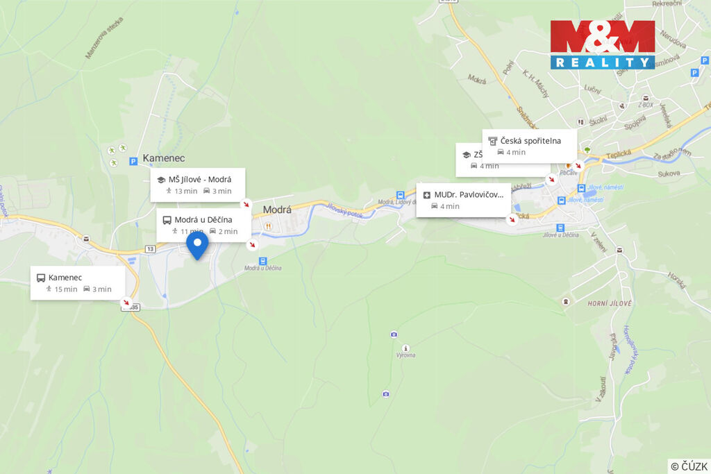 Nabízíme k prodeji atraktivní rodinný dům v klidné části obce Modrá u Děčína. Tento samostatně stojící dům nabízí ideální zázemí pro rodinné bydlení. Nemovitost má 2 nadzemní podlaží a je částečně podsklepena. Vnitřek domu prošel částečnou rekonstrukcí, což umožňuje novým majitelům dokončit interiér dle vlastních představ. Díky své velikosti a dispozičnímu řešení, může sloužit jako více generační bydlení. Součástí domu je velká garáž, kterou lze využít i k podnikání. Je zde prostorná zahrada o rozloze 848 m², která zajišťuje dostatek soukromí a klidu. Skvělá dopravní dostupnost do Ústí nad Labem, Děčína a na dálnici D8 do Německa či Prahy je dalším velkým benefitem této nemovitosti. Nepropásněte tuto jedinečnou příležitost pro klidné a komfortní bydlení! Pro více informací mne neváhejte kontaktovat. S financováním vám zdarma pomůžou naší hypoteční specialisté.