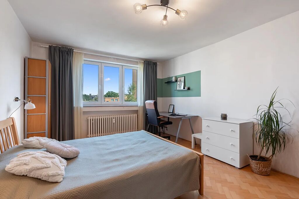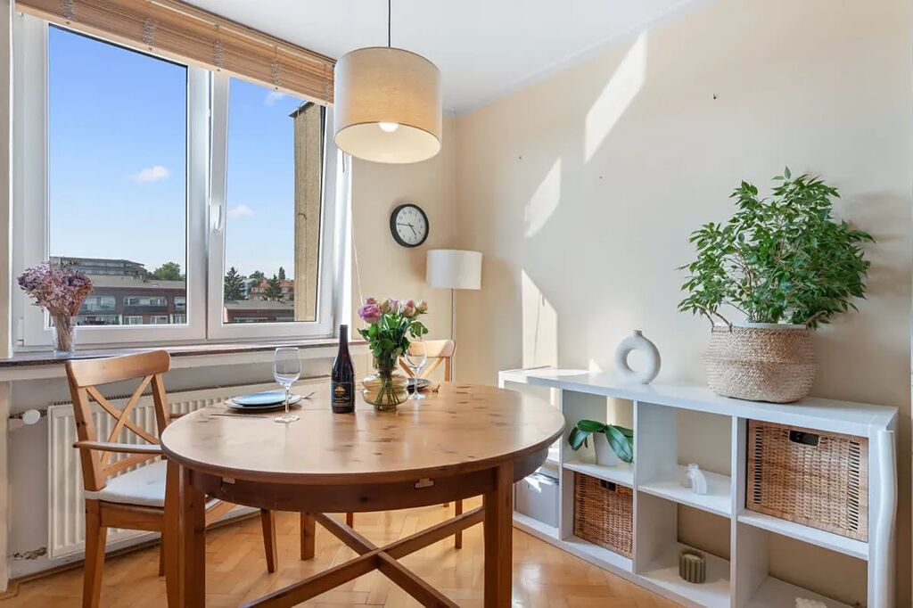 Okna směřují na dvě světové strany, díky čemuž je byt přirozeně prosvětlený po celý den.