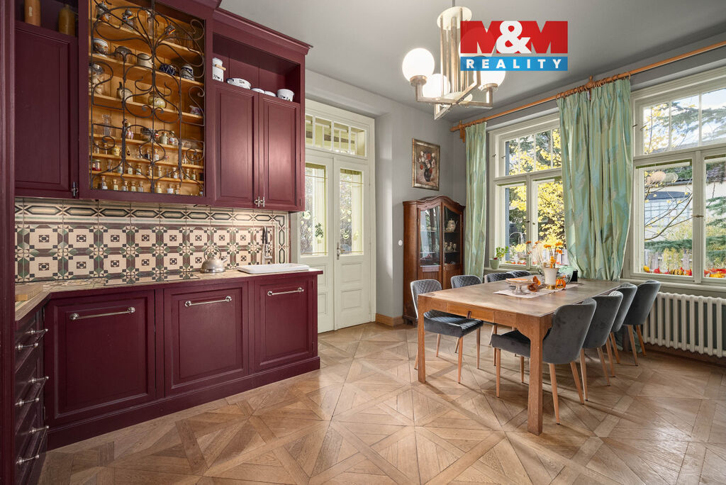 Hledáte kouzlo historie, které zůstalo zachováno v původním duchu? Nabízíme vilu z roku 1914, která byla v roce 2007 zrekonstruována s důrazem na zachování původního stylu. Dům je kompletně podsklepen, vytápění zajišťuje tepelné čerpadlo země vzduch, navíc jsou v domě 3 designová kamna za účelem lokálního vytápění a příjemné atmosféry. Interiéry jsou vybaveny dřevěnými podlahami (francouzské palubky), vestavěný dřevěný nábytek, kuchyňská linka, interiérové dveře. V současné době je dům využíván dvougeneračně s možností rozšíření obytných prostor na půdě. Vlastní, rovinatý pozemek o celkové výměře 1405 m2, na němž najdete letní kuchyni s pergolou, zahradní koupací jezírko, skleník, zděný zahradí domek, zimní zahradu. Vila je umístěna v městysi Karlštejn, asi 13 km východně od Berouna a 30 km jihozápadně od centra Prahy. Leží uprostřed chráněné krajinné oblasti Český kras. Dominantou obce je hrad Karlštejn a jedinečná příroda obklopující tuto lokalitu, vč. řeky Berounky.