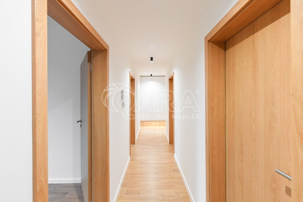 Nabídka pronájmu nového bytu o dispozici 3+kk s balkonem a možností garážového stání, ul. 102. pluku, Benešov. Byt je umístěn ve 2.NP novostavby bytového domu z roku 2023 (projekt U Pivovaru), který se nachází v širším centru města.