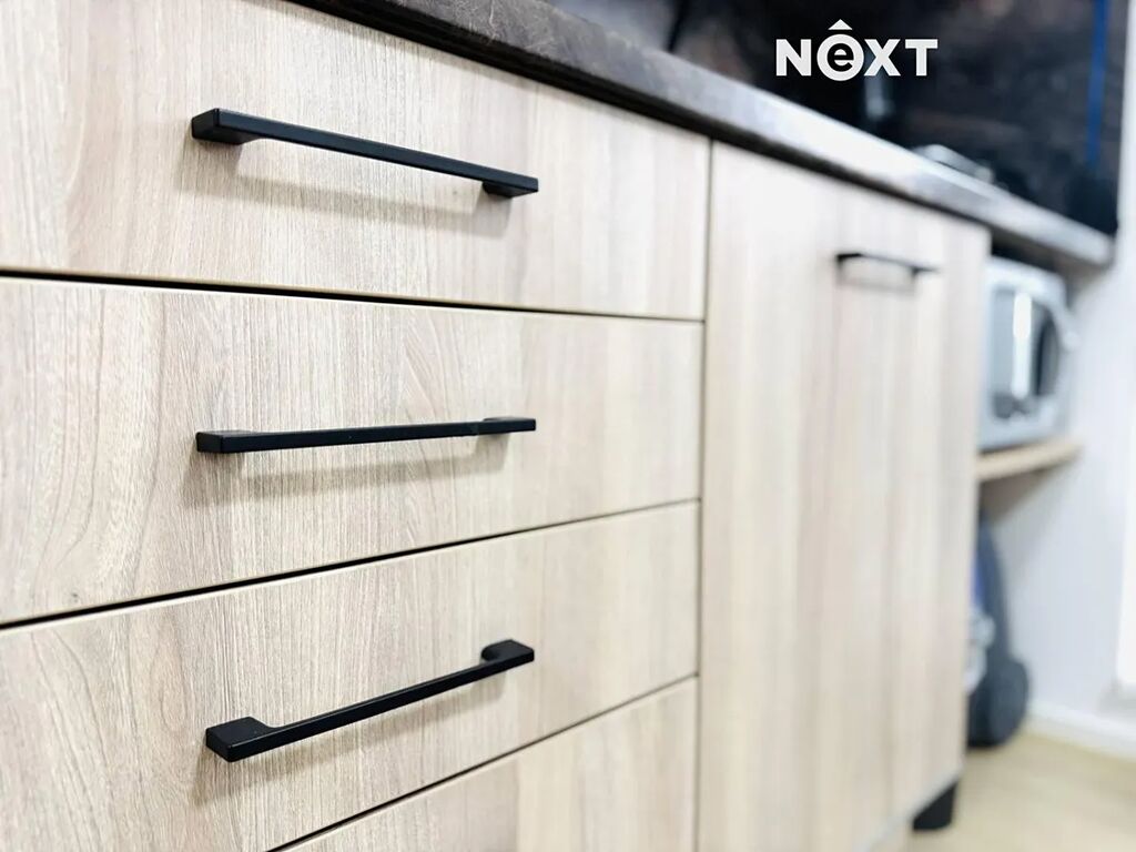Byt vás přivítá promyšlenou dispozicí a čistým designem. Ze vstupní chodby o velikosti 2,3 m² se vstupuje do koupelny se sprchovým koutem, toaletou a pračkou o výměře 3,5 m². Hlavní obytný prostor s kuchyňským koutem o velikosti 16,5 m² působí vzdušně a svěže – kuchyňská linka je vybavena vestavěnými spotřebiči, lednicí, mikrovlnnou troubou i elegantním černým dřezem.