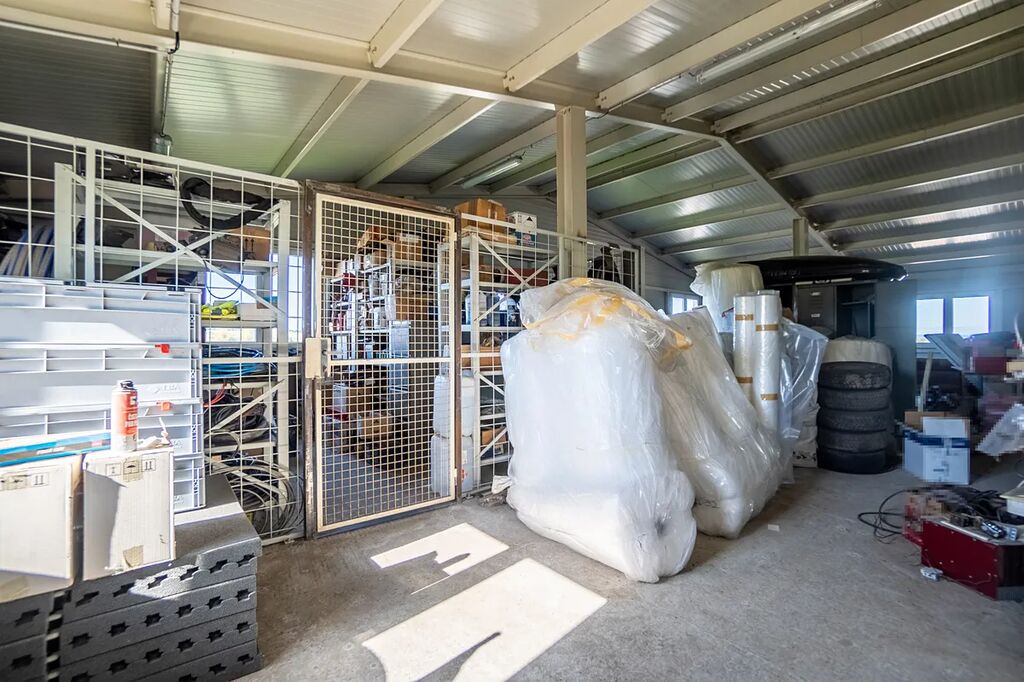 Skladová hala je vybavena, nachází se zde manipulační plochy, dílna s obslužným objektem vč. vnitřního vybavení a manipulačních ploch a dále administrativní prostory. Je v dobrém stavebně-technickém stavu. Ve střešní části je instalováno zařízení solární elektrárny včetně všech jeho součástí na základě zřízeného věcného břemene.