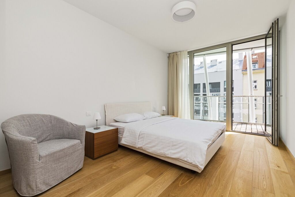 Nabízíme k pronájmu luxusní, klimatizovaný byt 2+kk s terasou ve 2. patře novostavby Rezidence Ellipsis s 24/7 recepcí, výtahem, podzemní garáží, wellness - bazén, sauna, a rozlehlou zahradou s parkovou úpravou v lokalitě Praha 5 - Smíchov s výborným spojením do centra, do nákupního centra Nový Smíchov, do Německé a Francouzské školy. Zařízený byt o velikosti 78,10 m2 nabízí vstupní halu, prostorný obývací pokoj otevřený s jídelnou a plně vybavenou kuchyní a se vstupem na terasu o velikosti 11,48 m2, ložnici, koupelnu s vanou, sprchovým koutem, bidetem a toaletou. Kvalitní materiály, dřevěné podlahy, velkoformátová dlažba, francouzská okna, bezpečnostní dveře, internet, A/C, sklep. Možnost nájmu garážové stání za poplatek 200 EUR +21%DPH/měsíc. Oblíbená lokalita Praha 5 - Smíchov s dobrým dopravním spojením, v pěší vzdálenosti na stanici metra a tramvaje Anděl, do parku Petřínské sady. Nájem 2.200 EUR + 12% DPH splatný v EUR + členský poplatek za využití wellness 100 EUR/měsíc. Nájem zahrnuje spotřebu energií, internet a 2x měsíčně úklid. V přízemí budovy se rovněž nachází fitness centrum Prisma Institut. Byt je určen ke střednědobému pronájmu, minimální doba ubytování je jeden měsíc.