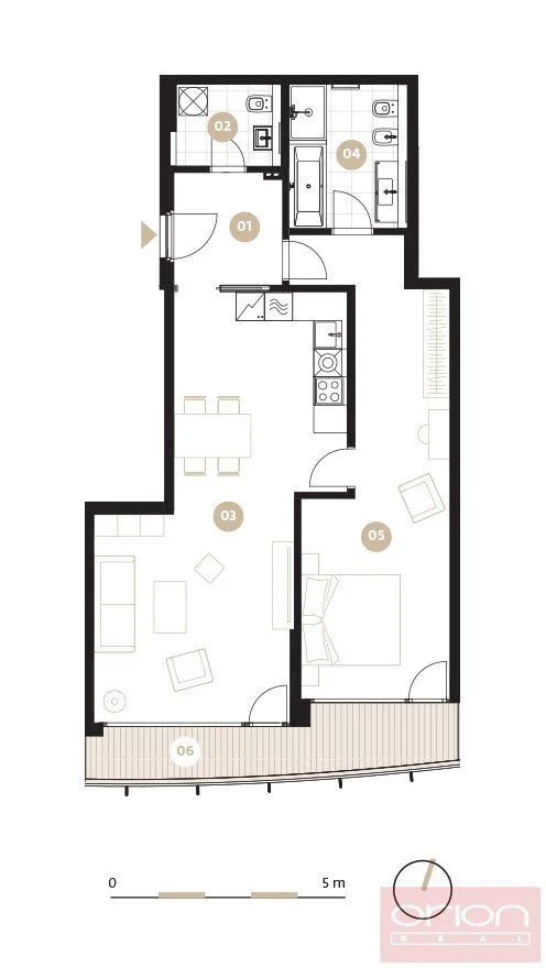 Nabízíme k pronájmu luxusní, klimatizovaný byt 2+kk s terasou ve 3. patře novostavby Rezidence Ellipsis s 24/7 recepcí, výtahem, podzemní garáží, wellness - bazén, sauna, a rozlehlou zahradou s parkovou úpravou v lokalitě Praha 5 - Smíchov s výborným spojením do centra, do nákupního centra Nový Smíchov, do Německé a Francouzské školy. Zařízený byt o velikosti 78,10 m2 nabízí vstupní halu, prostorný obývací pokoj otevřený s jídelnou a plně vybavenou kuchyní a se vstupem na terasu o velikosti 11,48 m2, ložnici, koupelnu s vanou, sprchovým koutem, bidetem a toaletou. Kvalitní materiály, dřevěné podlahy, velkoformátová dlažba, francouzská okna, bezpečnostní dveře, internet, A/C. Nájem 2.200 EUR + 12% DPH splatný v EUR + členský poplatek za využití wellness 2.500 CZK/os/měsíc. Nájem zahrnuje spotřebu energií, internet a 2x měsíčně úklid. V přízemí budovy se rovněž nachází fitness centrum Prisma Institut. Možnost nájmu garážové stání za poplatek 230 EUR +21%DPH/měsíc. Oblíbená lokalita Praha 5 - Smíchov s dobrým dopravním spojením, v pěší vzdálenosti na stanici metra a tramvaje Anděl, do parku Petřínské sady. Byt je určen ke střednědobému pronájmu, minimální doba ubytování je jeden měsíc.