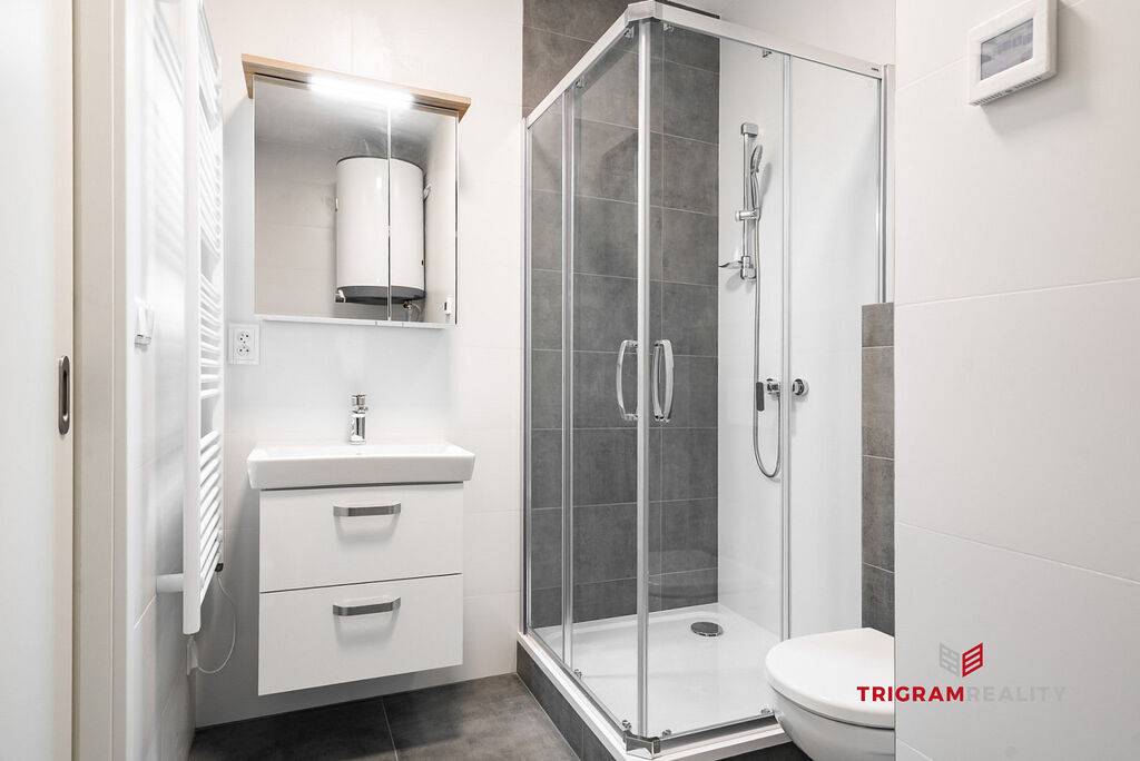 Byt prošel kompletní a kvalitní rekonstrukcí, vše je tedy zcela nové a nepoužité. Zateplené jsou podlahy i stropy. Po vstupu do bytu na vás dýchne prostorná předsíň s vestavěnou skříní a s dostatkem místa pro věšák i botník. Z chodby se vstupuje do koupelny vybavené sprchovým koutem, umyvadlem se skříňkami, toaletou, přípojkou a dostatečným prostorem pro pračku. Součástí je také bojler na ohřev vody.