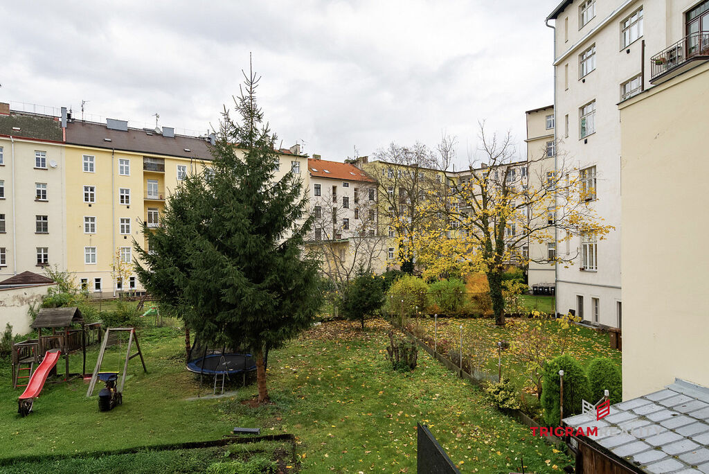 Z kuchyně i ložnice je příjemný výhled do klidného vnitrobloku, který bude v příštím roce zateplený. Okna s trojskly zajišťují naprostý klid.