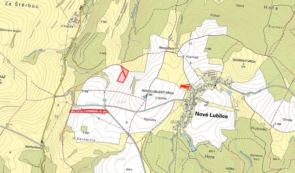 Zemědělská půda od přímého vlastníka: Pozemky jsou zapsané na LV 33 v KÚ Nové Lublice pod parcelními čísly 59/1, 63/3, 63/4, 63/8, 63/9, 77/19, 77/20, 1108 a 1110 a na LV 18 v KÚ Staré Lublice pod parcelními čísly 1008, 1009, 1010 a 1073. Celková výměra pozemků činí 63 407 m2 a z toho je k prodeji 23 778 m2 zemědělské půdy. Z toho trvalý travní porost je 2 506 m2, ostatní plocha 240 m2 a orná půda 21 031 m2.