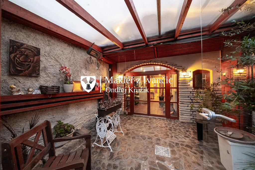 Přízemí je podélně rozděleno na vstup do komerční části s odděleným vstupem, a do samotné obytné části. Komerční část je zkolaudovaná jako provozovna, má vlastní sociální zařízení a díky blízkosti centra může poskytnou zázemí službám jako jsou kavárny, administrativní kanceláře, kosmetika, menší obchod, ordinace, nebo třeba soukromá dílna. Zároveň se zde nachází vstup na zahradu a do původního vinného sklepa.