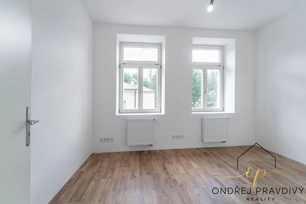 Byt se nachází ve 2. nadzemním podlaží a po kompletní přestavbě domu se může pyšnit nadstandardní kvalitou provedení a použitých materiálů. Provedení zahrnuje dřevěné plovoucí podlahy, dřevěná euro okna s trojskly, designové dlažby a nadčasové obklady. Značková sanita firem Laufen a Hansgrohe. Dále jsou datové rozvody, příprava na zabezpečení a elektromobilitu. Díky zateplení celého domu i vlastnímu kondenzačnímu kotli pro vytápění a ohřev vody budou provozní náklady skutečně příznivé. Orientace na jiho-západ zajišťuje dostatek slunečního světla a vysoké stropy zase pocit vzdušnosti. Příslušenství bytu zahrnuje terasu přístupnou z obývacího pokoje, vlastní parkovací stání a prostorný sklep 11 m² na jakékoliv sportovní či sezónní vybavení.