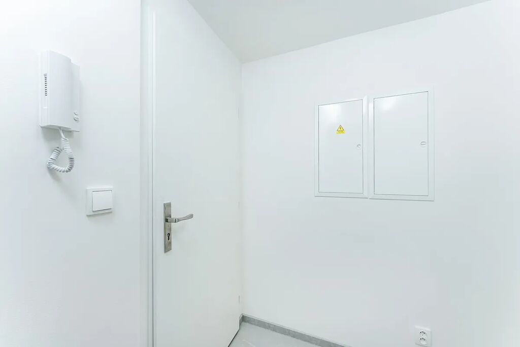 Vstupní úroveň bytu tvoří předsíň s místem na vestavěnou skříň, obývací pokoj s kuchyňským koutem, koupelna se sprchovým koutem a ložnice.