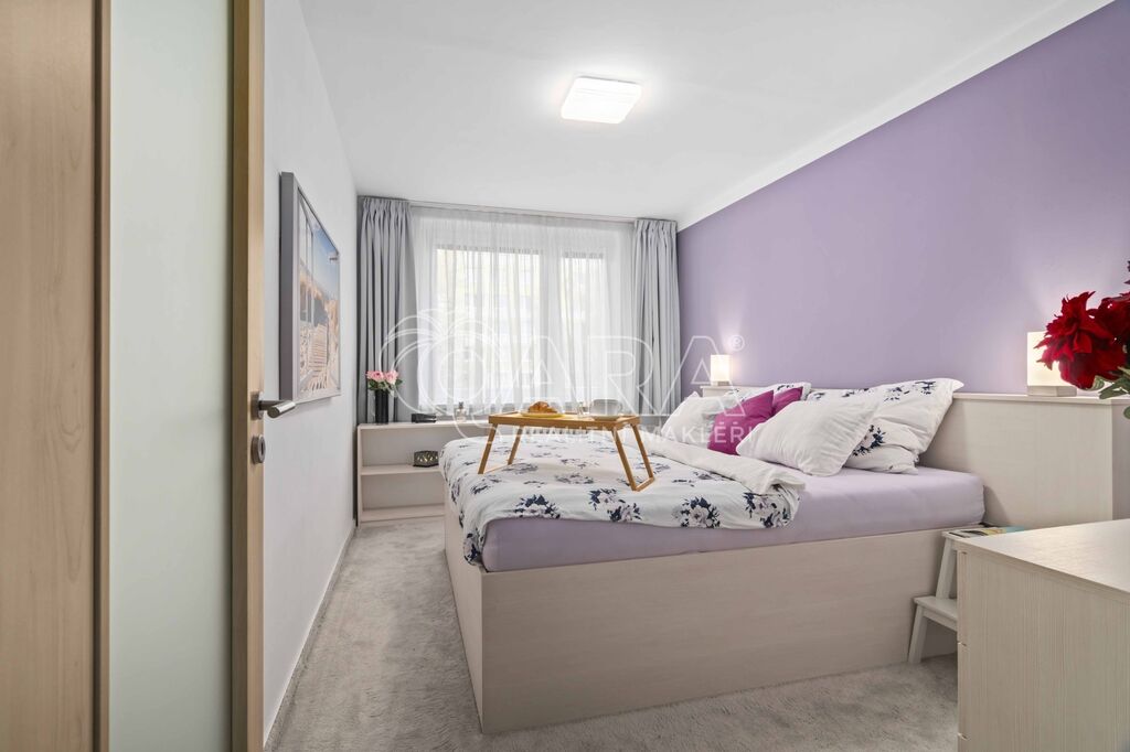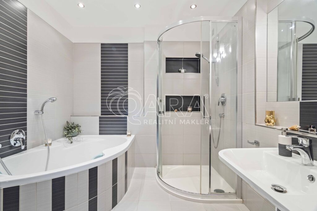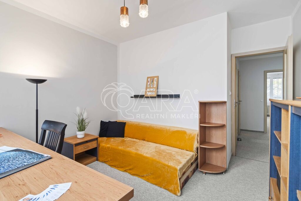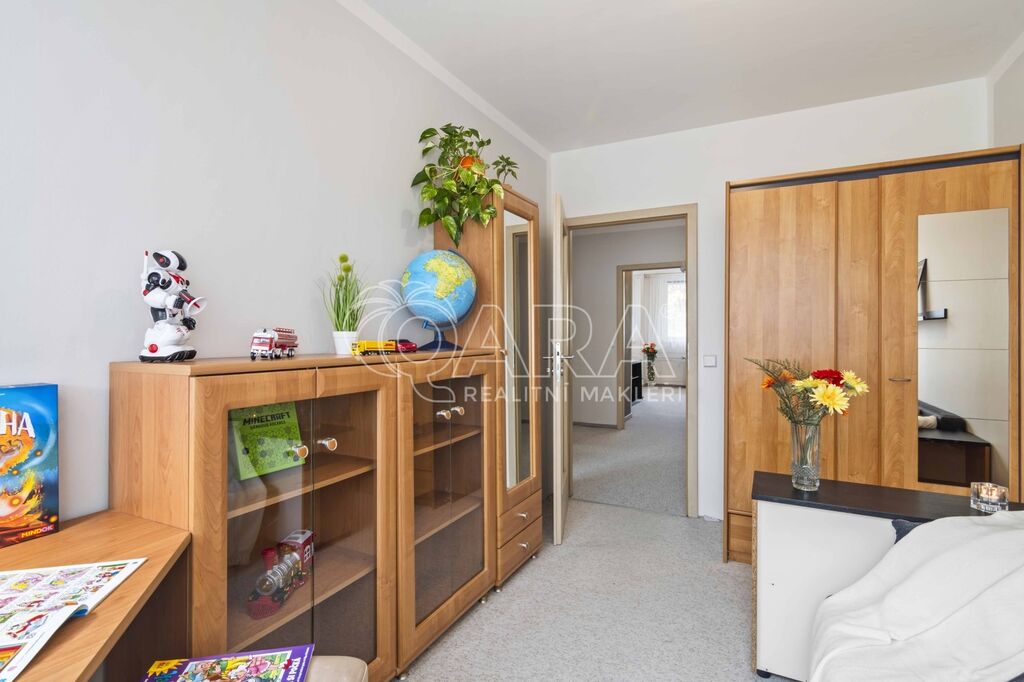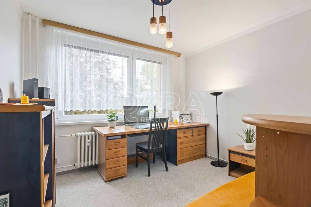 K bytu patří dětský pokoj, pracovna (může být dalším dětským pokojem) a místnost s oknem nyní sloužící jako komora a spíž, kde lze zřídit další ložnici. Dále oázou klidu je ložnice, jedinečná koupelna s vanou i sprchovým koutem pro Váš odpočinek, samostatná toaleta, hala, chodba a předsíň s bezpečnostními dveřmi.