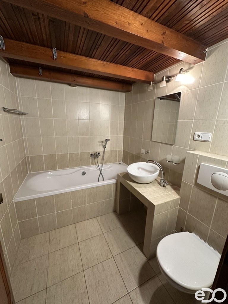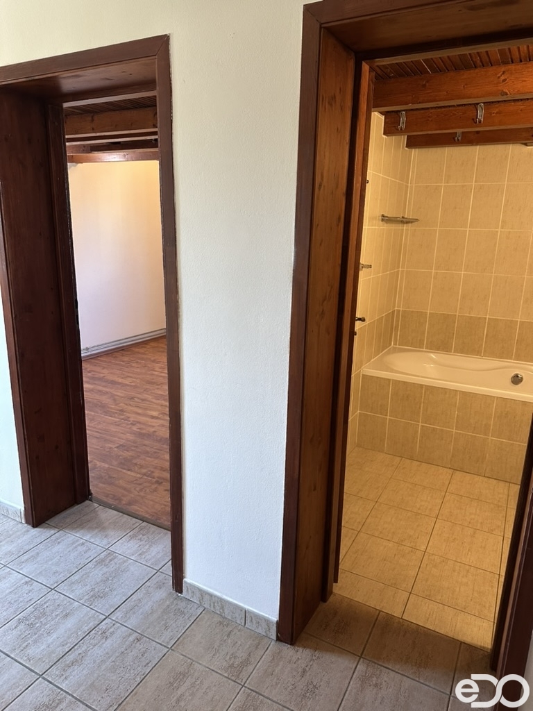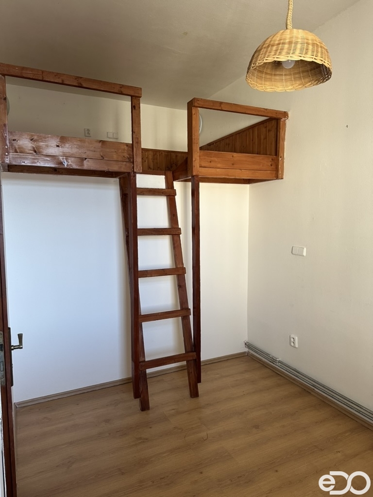 Byt má velmi prakticky řešenou dispozici – ze společné předsíně pro dva byty vstoupíte do vlastní chodby, z níž je přístup do prostorné šatny. Dále se nachází koupelna s vanou, kuchyně s jídelním koutem a dva samostatné pokoje, oba se zajímavě řešeným vyvýšeným dřevěným spaním, které poskytuje více prostoru pro bydlení i úložné plochy.