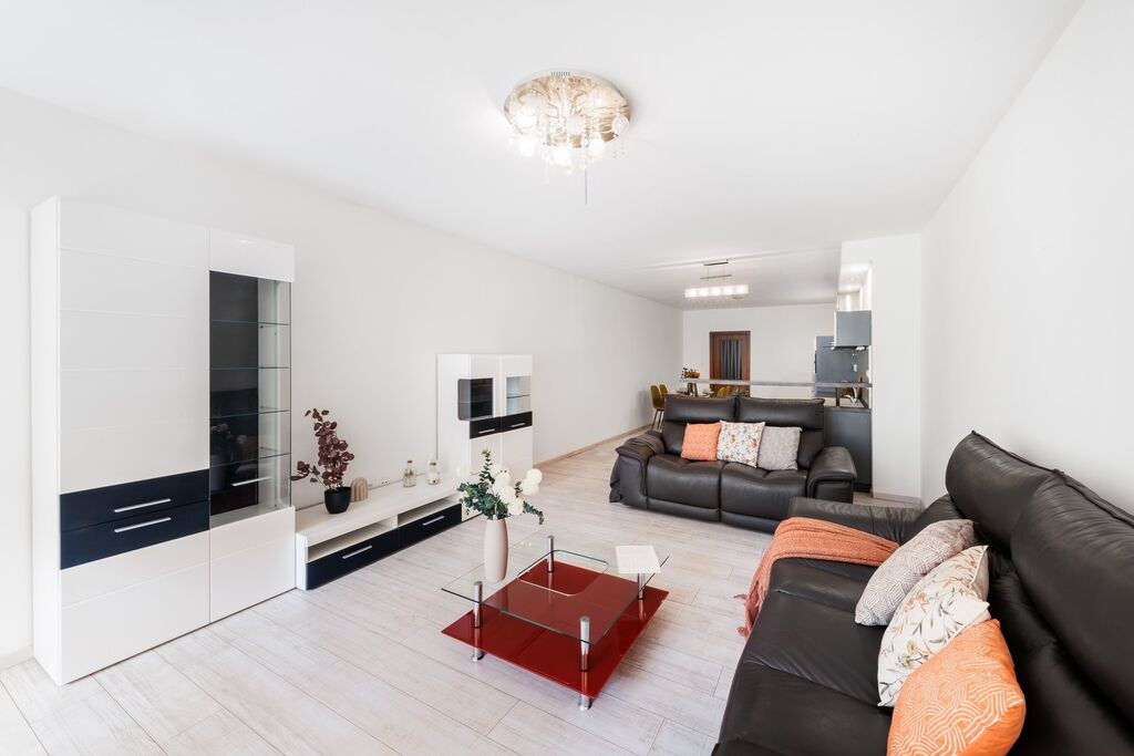 Bytová jednotka o dispozici 4+kk s celkovou podlahovou plochou 134 m² (podlahová plocha 106,8m2 + lodžie (11m²) a terasa (16m²)), který se nachází ve 2. nadzemním podlaží skeletového bytového domu v centru města Benešov u Prahy. Vstup do domu i bytu je bezbariérový.