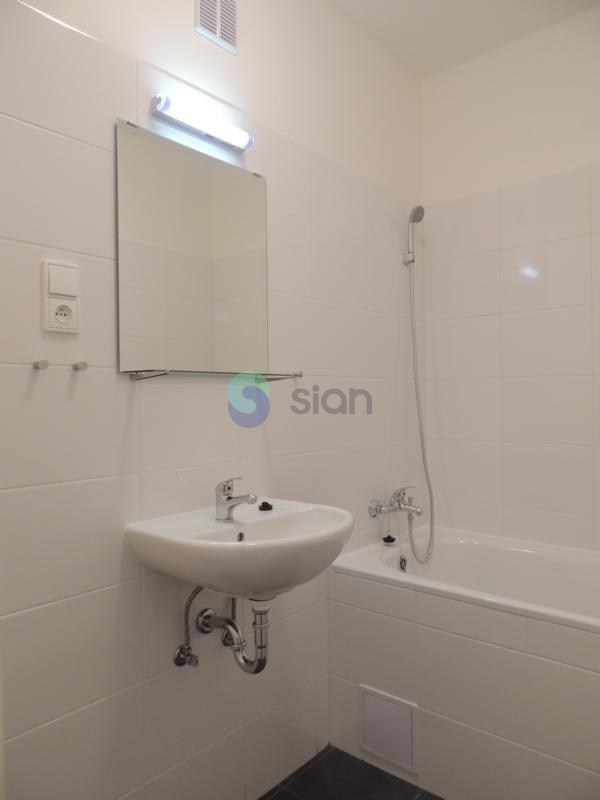 Koupelna s vanou a umyvadlem, toaleta je odděleně. Byt disponuje kuchyňskou linkou s kombinovaným sporákem.