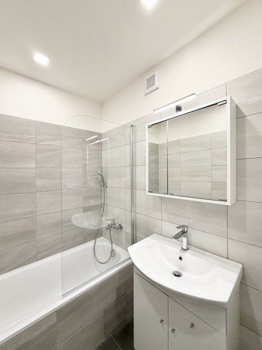 Byt se nabízí částečně vybavený. Kuchyň je vybavena myčkou, elektrickou troubou, varnou deskou a digestoří. Obývací část i oba samostatné pokoje jsou bez vybavení. V koupelně se nachází vana a umyvadlo, toaleta je oddělená. V celém bytě jsou instalovány žaluzie a příprava na garnýže.