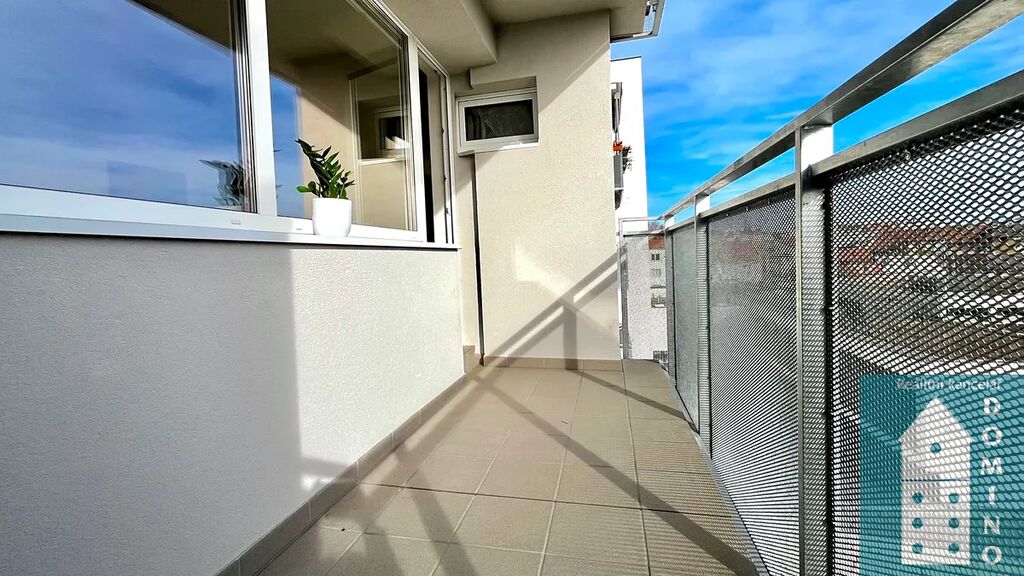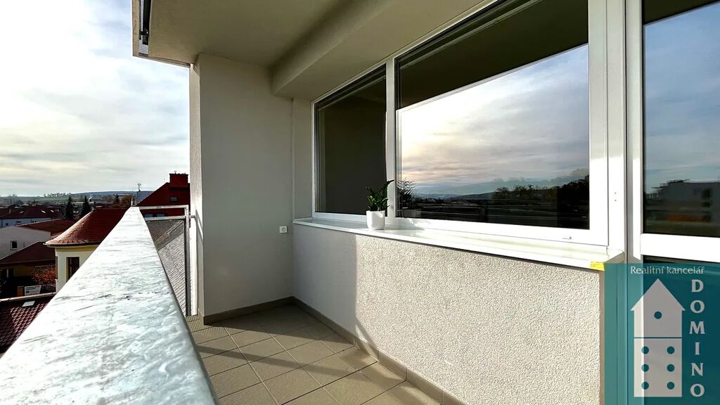 Z obývacího pokoje je vstup na balkon s výhledem do zeleně. Je zde dostatek prostoru na pěstování bylinek v květináči a na posezení, kde si v klidu vychutnáte svůj hrníček kávy.