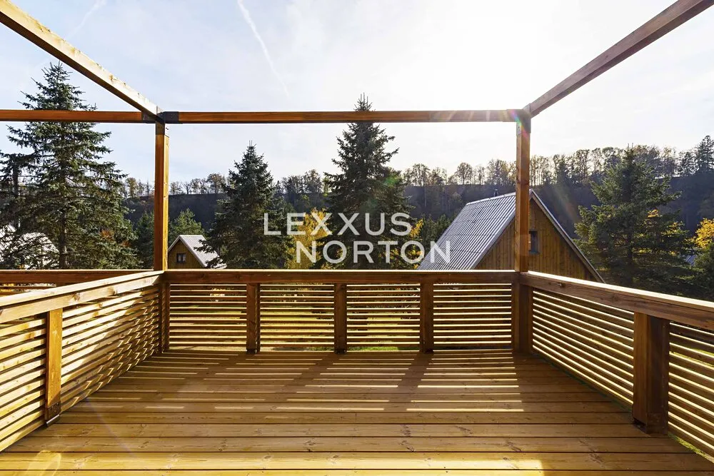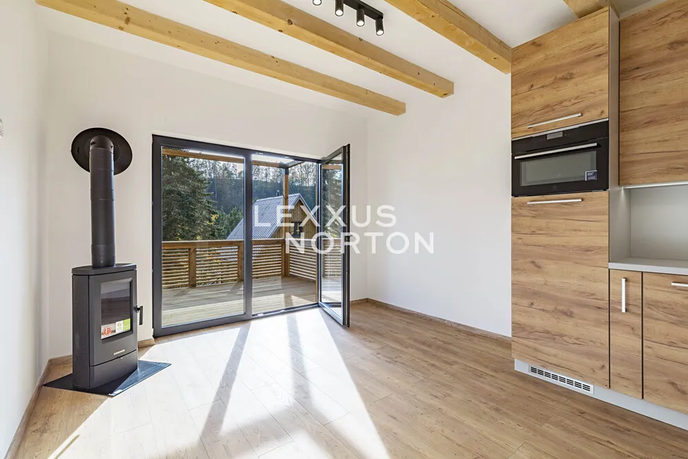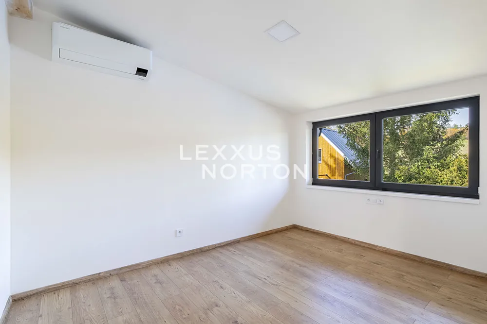 Každý apartmán s obytnou plochou 47,6 m² je navržen tak, aby nabízel maximální komfort pro krátkodobé i dlouhodobé pobyty. V přízemí se nachází obývací prostor s kuchyňským koutem, koupelnou a přímým vstupem na terasu s výhledem na okolní lesy. Pod terasou je uzamykatelný prostor o výměře 11,2 m². Horní patro pak nabízí 2 prostorné ložnice. Moderní koupelna a stylový interiér zajišťují vysoký standard rekreačního bydlení. Apartmány jsou vybaveny kamny, klimatizací, kuchyňskou linkou. K využití je společná zahrada.