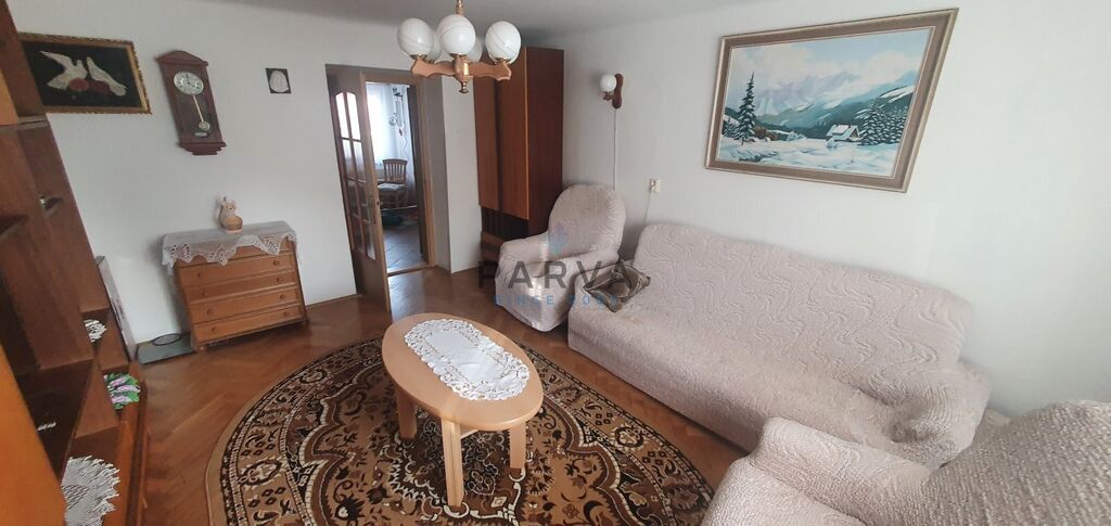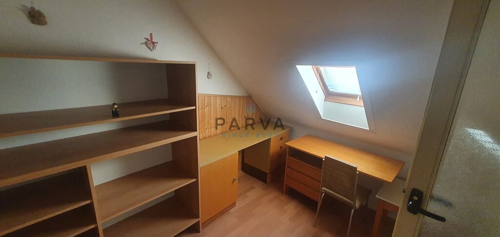 V patře pak další obývací pokoj, ložnici, malý pokojík a koupelnu.