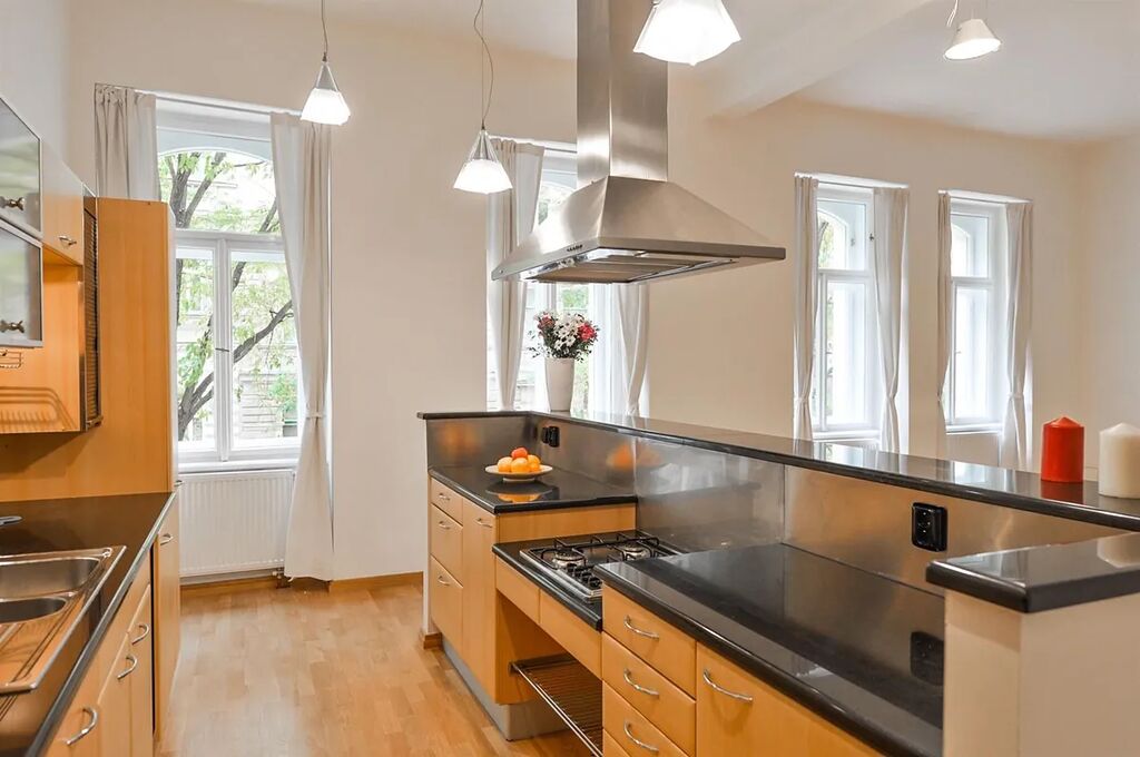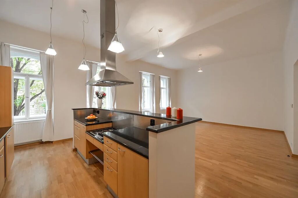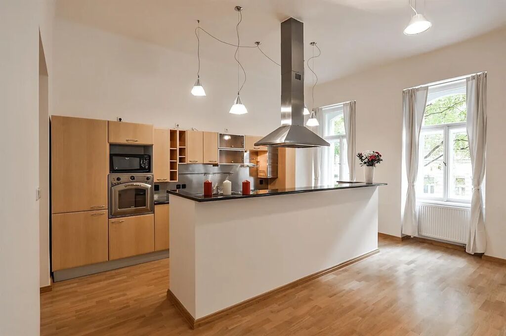 Nově zrekonstruovaný mezonetový byt 3+1 (2 ložnice, 2 koupelny), s balkónem, o celkové rozloze 118 m2, je situovaný ve 1. patře a v přízemí, rekonstruované rezidenční budovy s výtahem v populární lokalitě Praha 2 Vinohrady, v ulici Mánesova.