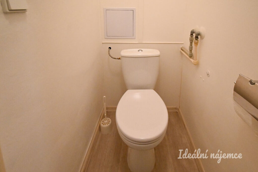 Byt se nabízí vybavený dle fotografií. V zádveří se nachází vestavná skříň se zrcadlem. Kuchyně disponuje elektrickou troubou, plynovým sporákem, mikrovlnnou troubou, lednicí a jídelním stolem se židlemi. V koupelně je vana a umyvadlo, toaleta je umístěna samostatně. Pokoj je vybaven nábytkem – velkou dřevěnou skříní, menší policovou skříní, TV stolkem včetně televize a lampou. Balkon je přístupný z kuchyně.