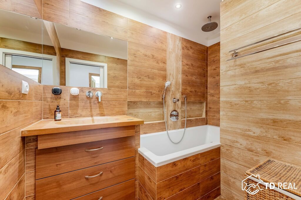 Bytová jednotka prošla rekonstrukcí v roce 2012 - nová koupelna (zděné jádro), z části nové podlahy - vinyl, renovace parket, rozvody vody, odpady, el. v mědi, vstupní dveře jsou bezpečnostní. Koupelna disponuje podlahovým vytápěním a stropní sprchou nad vanou v zadní části.