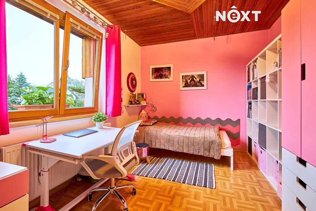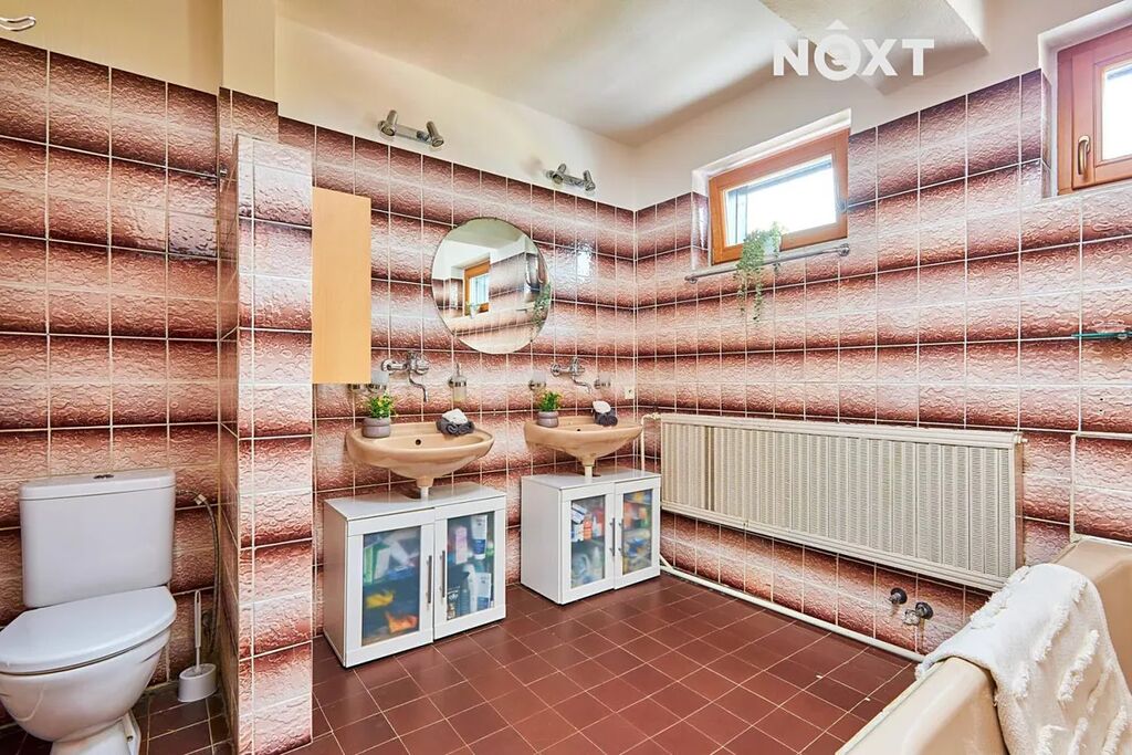 Dispozice pro rodinu, která chce prostor a propojení zároveň. V přízemí najdete pokoj pro hosty, pracovnu, koupelnu, samostatné WC a praktickou prádelnu. V patře vás přivítá velkorysý obývací prostor s výstupem na terasu, s kuchyní (55 m²!), čtyři další pokoje a druhá koupelna. A ve sklepě? Tam si můžete dát do těla v posilovně nebo si jen tak něco uložit – místa je tu dost.